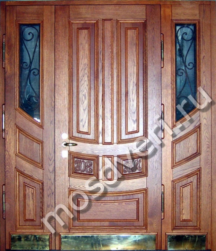 Парадная дверь из массива дуба со стеклом и ковкой — оформите заказ уже сегодня! Позвоните нам, и мы рассчитаем стоимость за несколько минут. Бесплатный замер — по вашему графику!