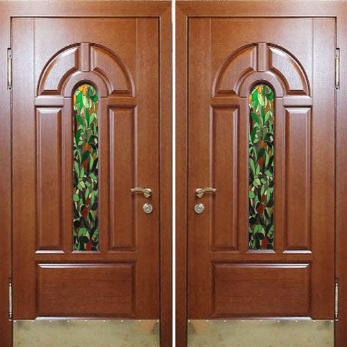 Элитная стальная дверь с отделкой массивом дуба и витражами в Шлиссельбурге